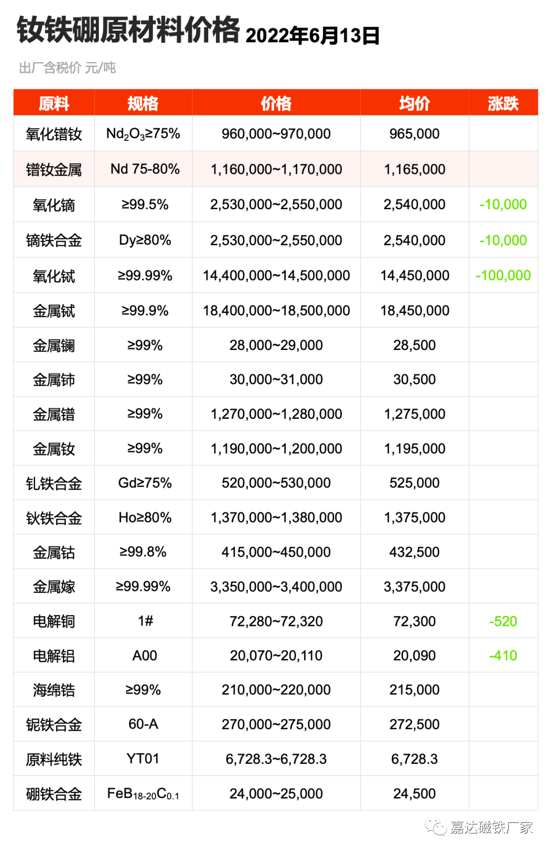 1. 每周新聞簡(jiǎn)訊 Weekly newsletters本周稀土市場(chǎng)行情,鐠釹、金屬釹和鋱的價(jià)格較為穩(wěn)定,鏑鐵價(jià)格小幅下降。亞洲金屬網(wǎng)周末價(jià)格: 鐠釹金屬價(jià)格1155-1165元/KG;金屬釹價(jià)格1185-1195元/KG;鏑鐵合金價(jià)格2510-2530元/KG;金屬鋱價(jià)格18500-18700元/KG。
